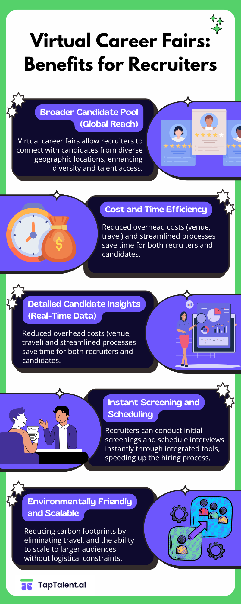 Summarizing the journey of a successful virtual career fair, we began by exploring the rise of virtual fairs, moved through careful planning and preparation, engaged candidates meaningfully during the event, and now conclude with strategic post-event initiatives. By embracing these best practices, recruiters can thrive in the evolving digital recruitment landscape. Virtual career fairs are not just a temporary trend but a powerful gateway to innovative and efficient recruitment strategies.