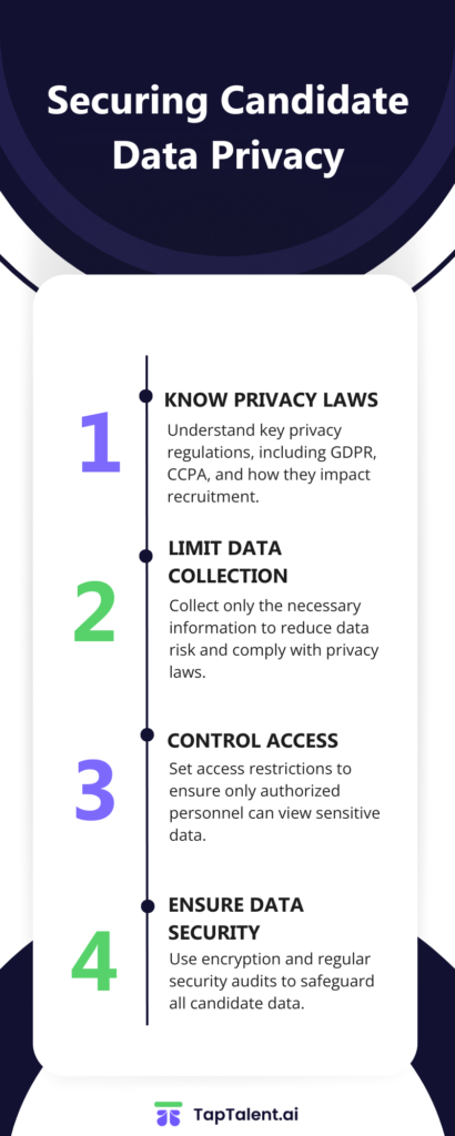 Conduct regular security audits to identify vulnerabilities in your systems and processes. These audits can help detect potential risks before they lead to breaches, maintaining the integrity and confidentiality of candidate data.