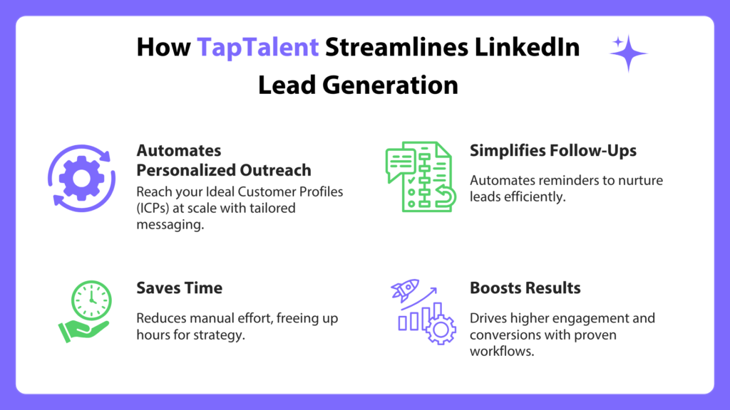 By combining LinkedIn’s unmatched reach with TapTalent’s automation, you can engage decision-makers at scale while maintaining personalized interactions—driving higher response rates and conversions.